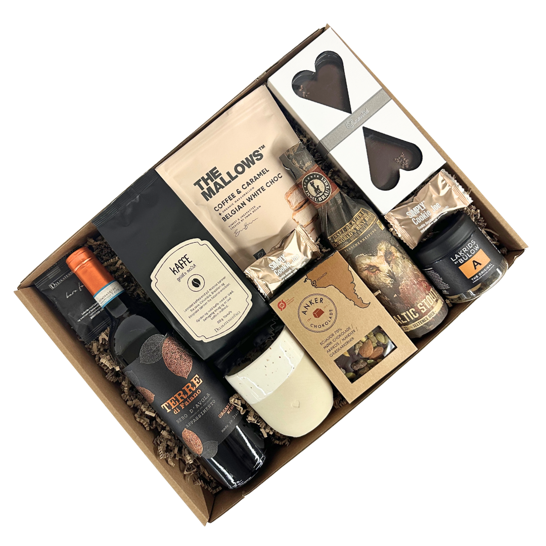 Produkt id: eksklusiv-gave-med-rødvin-kaffe-andre-lækkerier