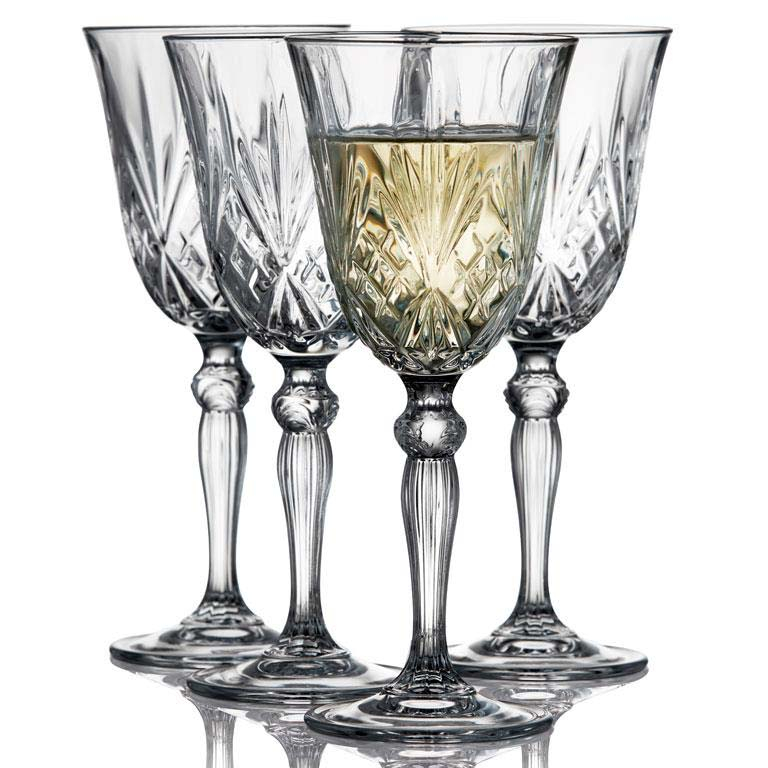 Vinens farve fremhæves elegant, når glassets smukke mønster reflekterer omgivelsernes lys og skygger. Tåler opvaskemaskine. 21 cl, højde 19 cm, 4 stk. Den smukke glasserie er fremstillet af ultraklart krystalglas ved brug af de fineste råmaterialer for at